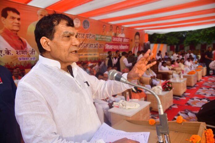 लखनऊ: नगर विकास एवं ऊर्जा मंत्री श्री ए.के. शर्मा ने अपने मऊ प्रवास के दौरान आज जूनियर हाईस्कूल मझवारा मोड़, घोसी में आयोजित सरदार वल्लभभाई पटेल जयंती समारोह, जन सेवा संवाद कार्यक्रम एवं विकास परियोजनाओं के लोकार्पण एवं शिलान्यास समारोह में मुख्य अतिथि के रूप में सहभागिता की कार्यक्रम की शुरुआत में मंत्री श्री शर्मा ने लौह पुरुष सरदार वल्लभभाई पटेल के चित्र पर पुष्प अर्पित कर उन्हें श्रद्धांजलि दी। इसके बाद उन्होंने दीप प्रज्वलित कर कार्यक्रम का शुभारंभ किया। मंच से उपस्थित जनता का अभिनंदन करते हुए उन्होंने कहा कि “सरदार पटेल का जीवन हम सबके लिए प्रेरणास्रोत है। उन्होंने जिस समर्पण और दृढ़ इच्छाशक्ति से देश को एकता के सूत्र में पिरोया, वह आज भी हम सभी के लिए प्रेरणा का स्रोत है।” कार्यक्रम के दौरान पटेल समुदाय के वरिष्ठ गणमान्य एवं समाजसेवियों को मोमेंटो देकर मंत्री श्री ए के शर्मा द्वारा सम्मानित किया गया।