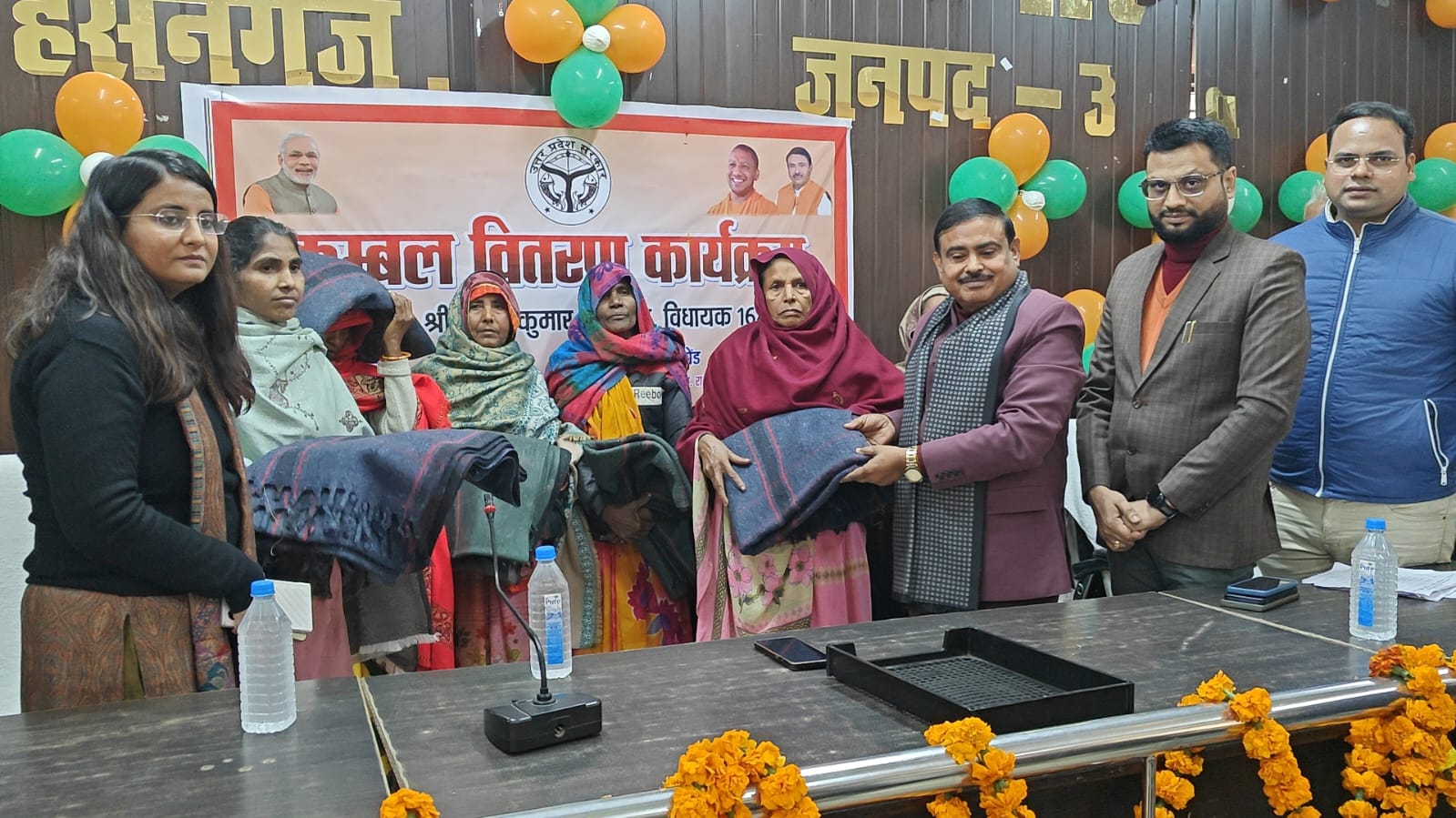 हसनगंज (उन्नाव): कड़ाकी ठंड की चपेट में फंसे गरीब और असहाय वृद्धजनों को राहत पहुंचाने के लिए शुक्रवार को तहसील सभागार हसनगंज में एक विशेष कार्यक्रम का आयोजन किया गया। क्षेत्रीय भाजपा विधायक बृजेश रावत और उपजिलाधिकारी प्रज्ञा पाण्डेय ने शासन की ओर से प्राप्त कम्बलों का वितरण किया। एक दर्जन से अधिक ग्राम पंचायतों से पहुंचे सैकड़ों वृद्धजनों, खासकर महिलाओं के चेहरों पर खुशी की लहर दौड़ गई।कार्यक्रम में प्रत्येक ग्राम पंचायत से पांच-पांच सदस्यों का चयन किया गया था, जिनमें ज्यादातर गरीब, असहाय और वृद्ध लोग शामिल थे। विधायक बृजेश रावत और एसडीएम प्रज्ञा पाण्डेय ने स्वयं प्रत्येक लाभार्थी को कम्बल भेंट कर ठंड से बचाव का संदेश दिया। वृद्धजनों ने इस पहल की सराहना करते हुए कहा कि यह सहायता उनके लिए समय पर आई है, जिससे अब वे कठोर सर्दी का सामना बेहतर ढंग से कर सकेंगे।इस अवसर पर विधायक बृजेश रावत ने जनता को संबोधित करते हुए प्रदेश सरकार की उपलब्धियों पर प्रकाश डाला। उन्होंने कहा कि मुख्यमंत्री योगी आदित्यनाथ की अगुवाई में गरीब कल्याण योजनाओं को गति दी गई है, जिसके तहत वृद्धजनों, विधवाओं और दिव्यांगों को विभिन्न सुविधाएं प्रदान की जा रही हैं। रावत ने केंद्र और राज्य सरकार की अन्य योजनाओं जैसे आयुष्मान कार्ड, पेंशन वृद्धि और आवासीय सहायता का भी जिक्र किया, जो ग्रामीण क्षेत्रों में क्रांति ला रही हैं।कार्यक्रम में अविनाश चौधरी तहसीलदार, दीपक गौतम नायब तहसीलदार, डा प्रीति नायब तहसीलदार, भाजपा नेता कपिल निगम सहित अन्य पदाधिकारी और कार्यकर्ता भी मौजूद रहे।