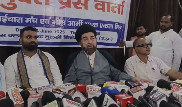 लखनऊ: यूपी प्रेस क्लब में भाईचारा सम्मेलन के आयोजन को लेकर प्रेस वार्ता की गई ये प्रेस वार्ता कौमी भाईचारा मंच एवं भीम आर्मी एकता मिशन के द्वारा आयोजन की गई इसमें शिया धर्म गुरु मौलाना कल्बे जवाद व कुलदीप भार्गव (प्रदेश अध्यक्ष भीम आर्मी यूपी) सहित कई लोग शामिल हुए