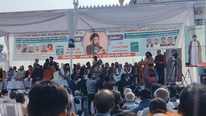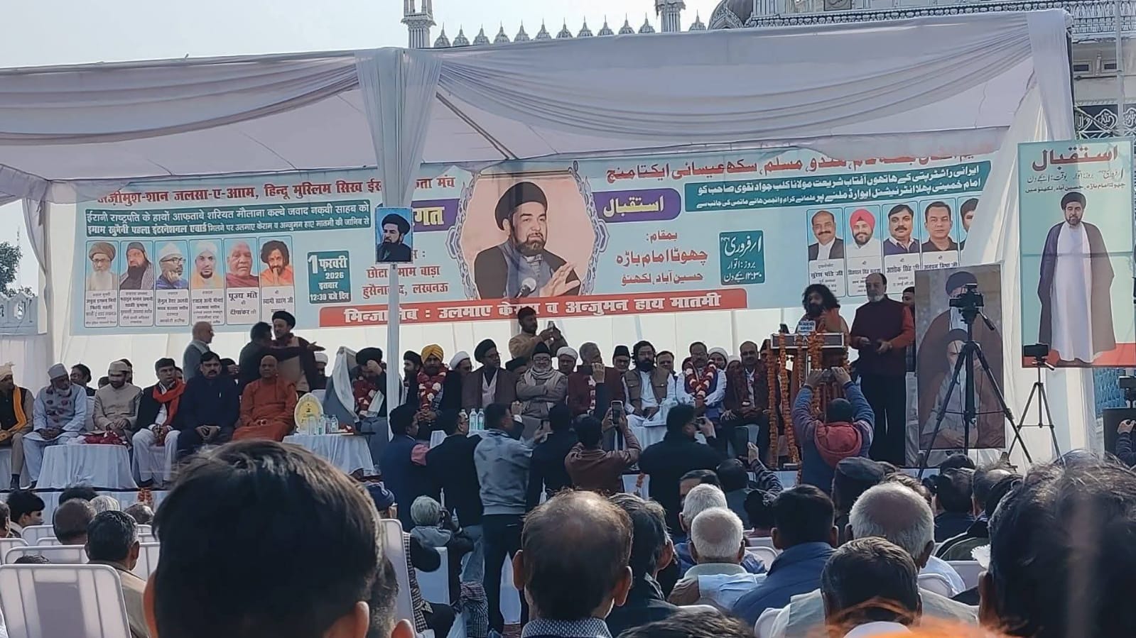 लखनऊ: देश में आपसी सौहार्द, अमन-शांति और गंगा-जमुनी तहज़ीब को मज़बूत करने के उद्देश्य से ऐतिहासिक छोटा इमामबाड़ा, हुसैनाबाद में आज दोपहर 12:30 बजे एक अज़ीमुश्शान जलसा-ए-आम का आयोजन किया जा रहा है। इस कार्यक्रम में हिन्दू, मुस्लिम, सिख और ईसाई समाज के प्रमुख धर्मगुरु, संत-महात्मा, उलमा और सामाजिक प्रतिनिधि एक मंच पर एकत्र होंगे।यह भव्य जलसा विशेष रूप से ईरानी राष्ट्रपति के हाथों इंटरनेशनल अवार्ड से सम्मानित मौलाना कल्बे जवाद नक़वी साहब के सम्मान में आयोजित हो रहा है। कार्यक्रम के माध्यम से विभिन्न समुदायों के बीच एकता और भाईचारे को बढ़ावा देने का प्रयास किया जाएगा।