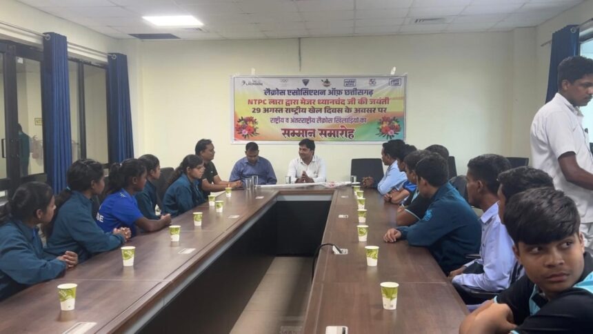 रायगढ़: खेलों के माध्यम से युवाओं का सशक्तिकरण सपनों को उड़ान भविष्य का निर्माण राष्ट्रीय खेल दिवस के अवसर पर एनटीपीसी लारा ने अपनी सशक्त सीएसआर पहलों के माध्यम से खेल प्रतिभाओं को प्रोत्साहित करने और युवाओं को सशक्त बनाने की उद्देश्य से प्रतिभा सम्मान सभा आयोजन किया इस अवसर पर छत्तीसगढ़ की लैक्रोस टीम के सदस्यों के साथ एक संवाद सत्र आयोजित किया गया जिसमें राष्ट्रीय और अंतर्राष्ट्रीय मंचों पर उनकी प्रतिबद्धता और उपलब्धियों को मान्यता दी गई।