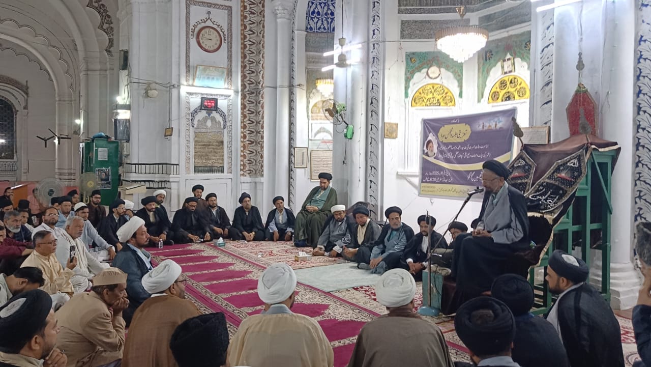 मौलाना सैय्यद कल्बे जवाद नक़वी इमाम-ए-जुमा लखनऊ, मौलाना फिरोज़ अली बनारसी (तंज़ीमुल मकातिब), मौलाना सैय्यद मुहम्मद मूसा रिज़वी (जामिआ सुल्तानिया), मौलाना मिर्ज़ा रज़ा अब्बास, मौलाना मिर्ज़ा जाफ़र अब्बास (जामेअतुत्तब्लीग़), मौलाना मुस्तफ़ा अली ख़ान अदीबुल हिंदी, मौलाना सैय्यद फ़रीदुल हसन (जामिआ नाज़मिया), मौलाना मकातिब अली ख़ान, मौलाना काज़िम मेहदी उरूज जौनपुरी ने तक़रीरें की और अपने तास्सुरात पेश किये।