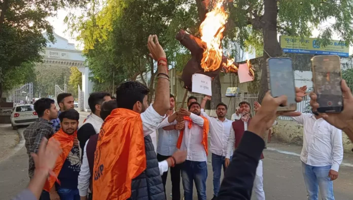लखनऊ: विश्वविद्यालय के गेट नंबर 3 पर राष्ट्रीय छात्र पंचायत के छात्रों ने बीसीसीआई (Board of Control for Cricket in India) का पुतला फूंक कर जोरदार विरोध प्रदर्शन किया।